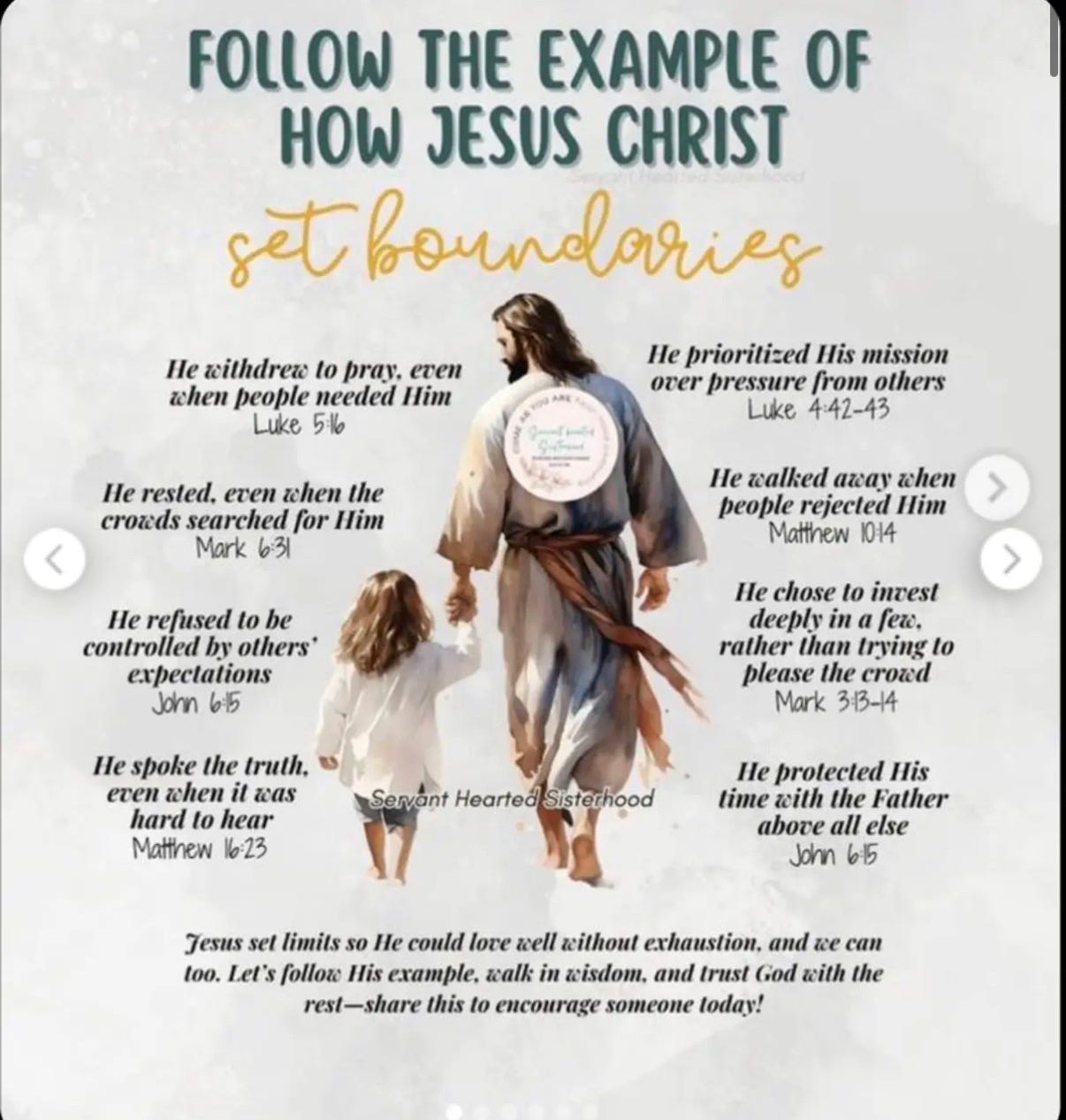 Jesus established clear, intentional boundaries during his ministry to prioritize his mission, rest, and communion with God over fulfilling every demand. He frequently withdrew from crowds to pray, said no to inappropriate requests, and protected his time and emotional energy to remain effective in his calling.
