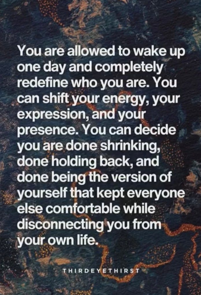 I didn’t just wake up one day and decide it would all change over night. I just really like this statement above. For me it was a process, an unlearning that has taken years. There are people who come into your life and place a huge mirror in your face. Actually everyone does it, but it’s up to us to be open enough to see it.